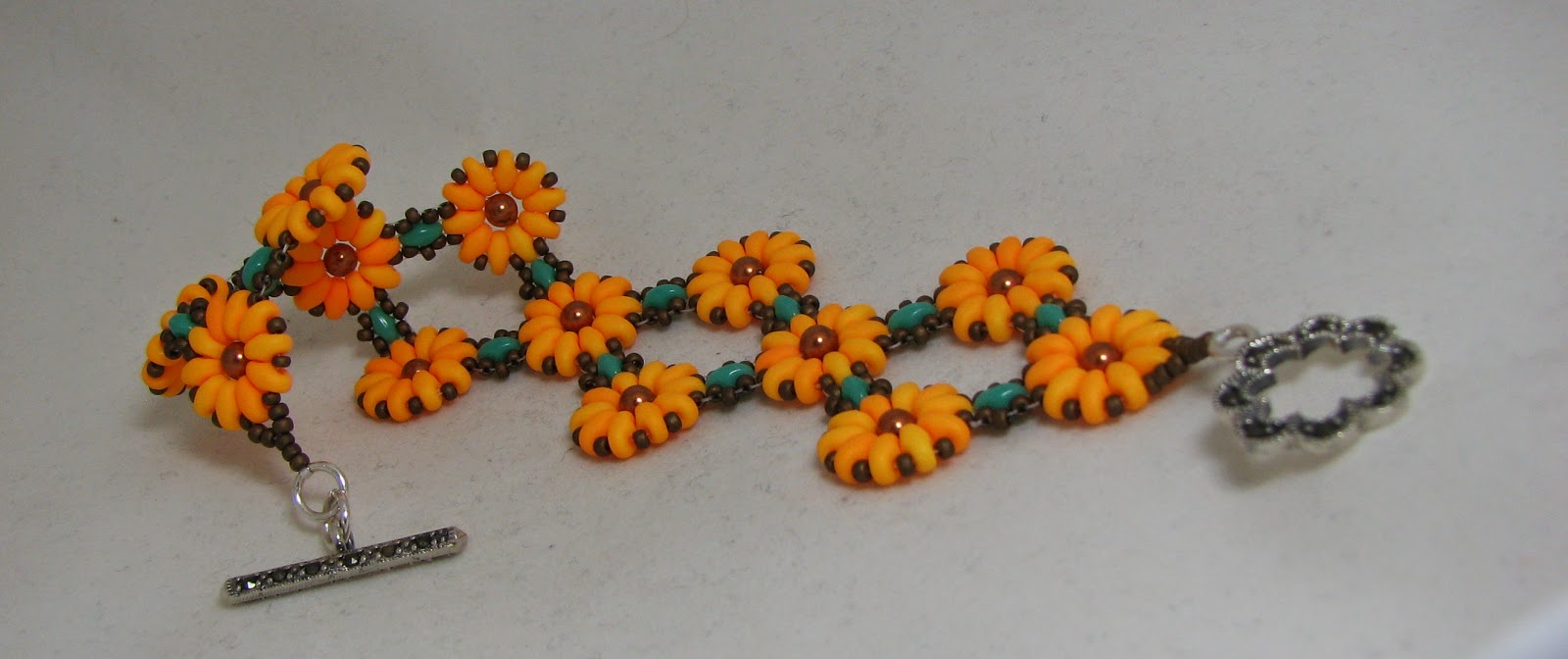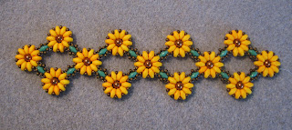 Luckily the October 2104 issue of Bead & Button had a wonderful bracelet project called "Mums in bloom", designed by Susan Schwartzenberger. Kits are available here.